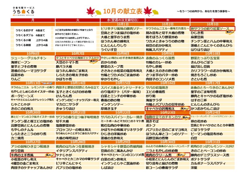 10月の献立です!